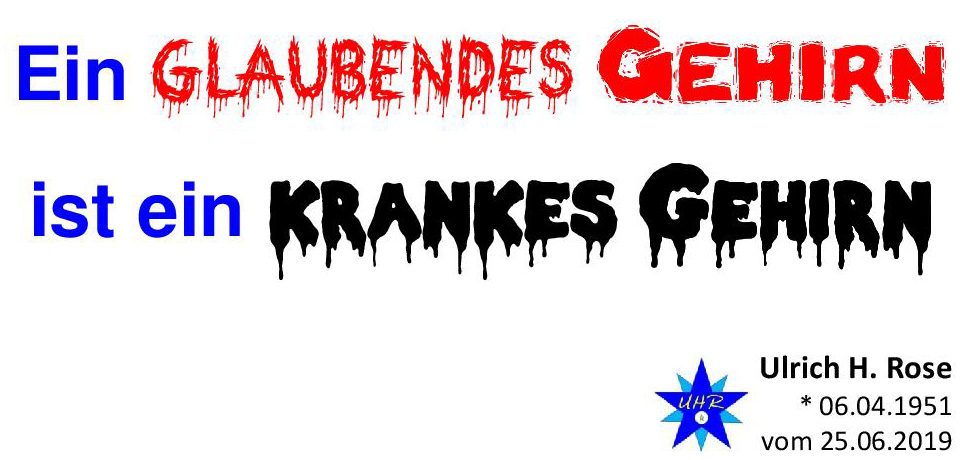 Ein glaubendes Gehirn ist ein krankes Gehirn. Gedankenextrakt von Ulrich H. Rose vom 25.06.2019