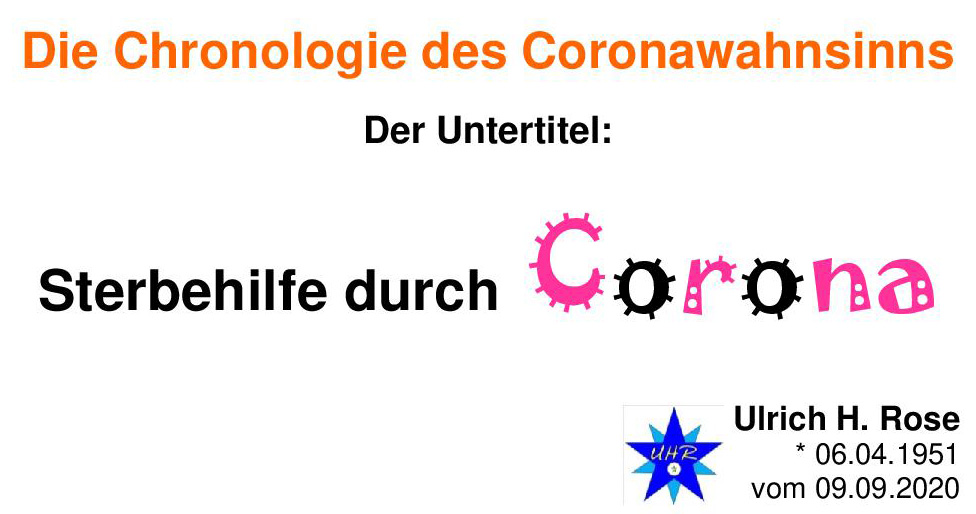 Die Chronologie des Coronawahnsinns. Untertitel: Sterbehilfe durch Corona. Ulrich H. Rose vom 09.09.2020
