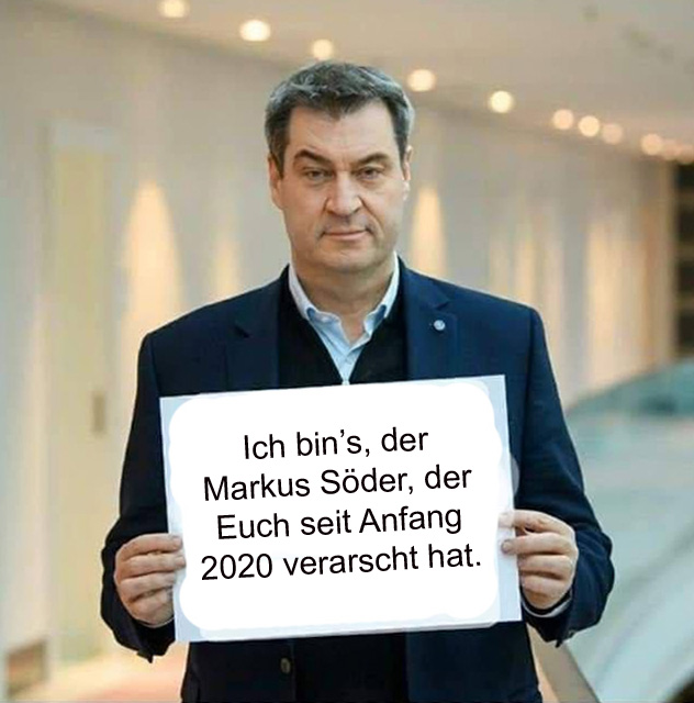 Ich bin’s der Markus Söder der Euch seit Anfang 2020 verarscht hat.