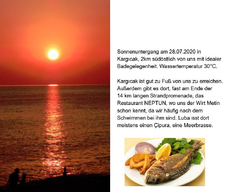 Bei so viel Wahnsinnigem und dem OberViVi Karl Lauterbach zum Ende des 21.07.2020 etwas Positives: Luba von Mahmutlar aus fotografiert. Solch ein Foto mit der Sonne zwischen Burgberg und Alanya gelingt nur um den 21. Juli von Alanya-Mahmutlar aus.