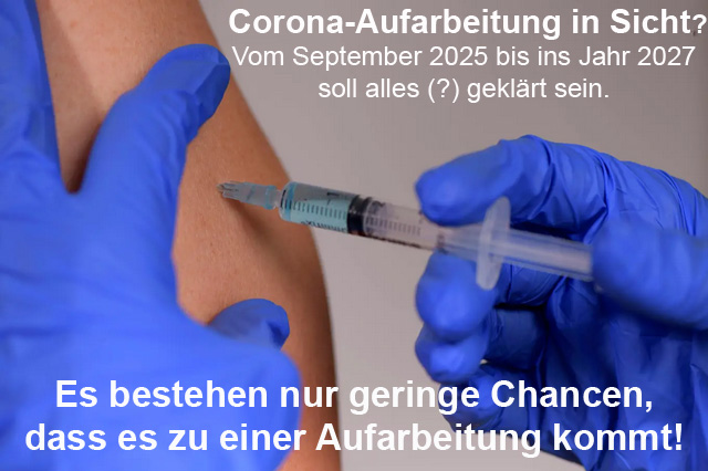 Corona-Aufarbeitung in Sicht? Vom September 2025 bis ins Jahr 2027 soll alles (?) geklärt sein. Es bestehen nur geringe Chancen, dass es zu einer Aufarbeitung kommt! Warum das? Weil in dieser Enquete-Kommission die Corona-Verbrecher in der Überzahl sind.