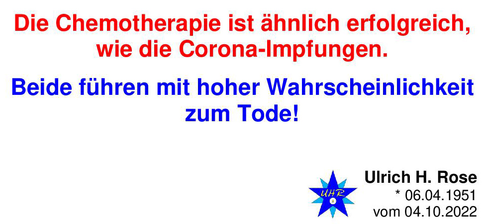 Die Chemotherapie ist ähnlich erfolgreich, wie die Corona-Impfungen. Beide führen mit hoher Wahrscheinlichkeit zum Tode! Ulrich H. Rose vom 04.10.2022