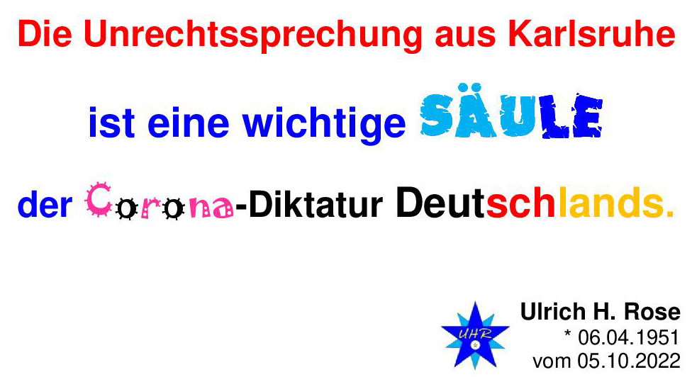 Die Unrechtssprechung aus Karlsruhe ist eine wichtige Säule der Corona-Diktatur Deutschlands. Feststellung von Ulrich H. Rose am 05.10.2022