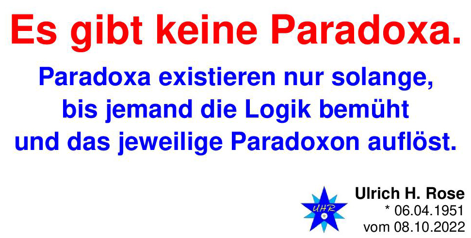 Es gibt keine Paradoxa. Paradoxa existieren nur solange, bis jemand die Logik bemüht und das jeweilige Paradoxon auflöst. Ulrich H. Rose vom 08.10.2022