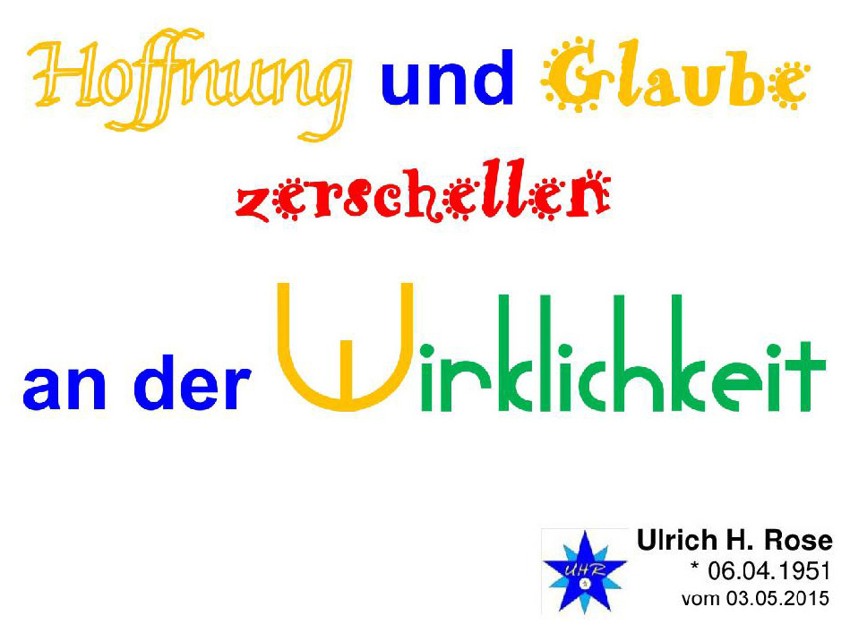 Hoffnung und Glaube zerschellen an der Wirklichkeit. Ulrich H. Rose vom 03.05.2015