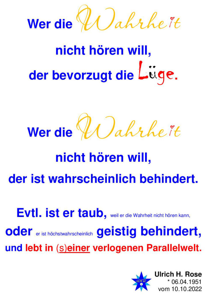 Wahrscheinlich hat Karl der Irre das nicht gelesen, denn: Und hier aktuell eine dumme und grobe Lüge, die Karl der Irre der MdB Dr. Christona Baum am 12.10.2022 gibt.