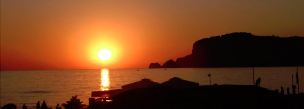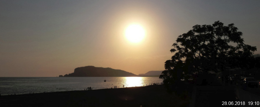 Sonnenuntergang über Çenger am Mittelmeer 09.01.2018 um 18:10. Die Sonne berührt gerade das Meer.