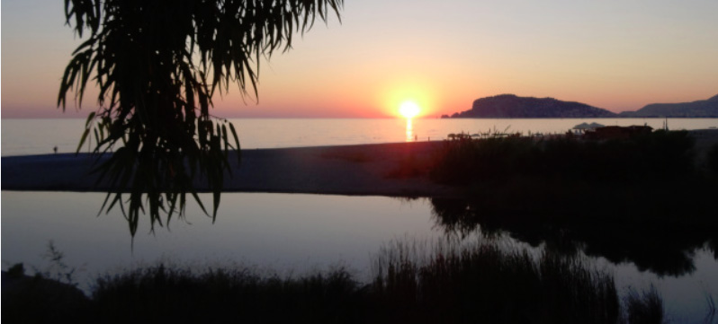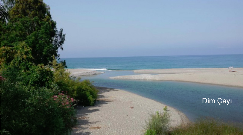 „Mein“ Badestrand in Alanya an der Flußmündung des Dimçay an der Grenze von Tosmur und Kestel:
