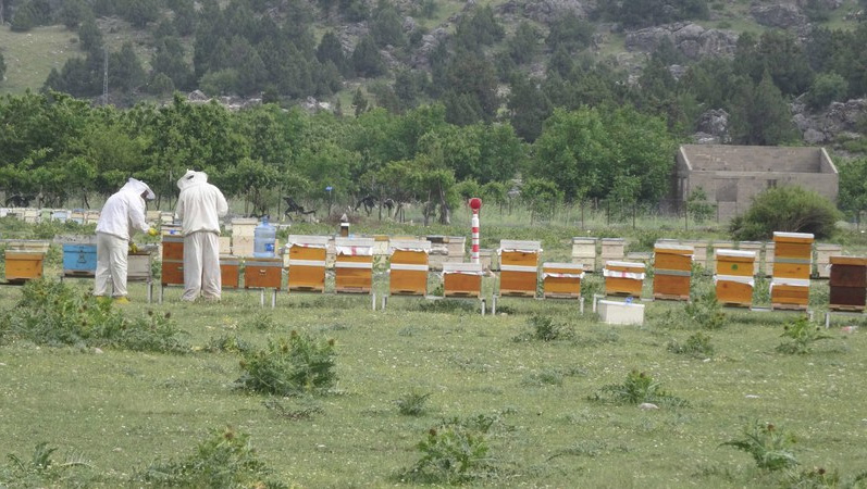 Die Bienen sind mittlerweile von Adnan und Eyüp auf ca. 1500m Höhe zwischengeparkt worden, müssen aber noch mit Zuckerwasser versorgt werden. Bei der Hochfahrt trafen wir auf 3 Ziegenherden, die auf gut 2.000 m von einer Person hochgetrieben werden – in 4 Tagen! Hier ein Foto davon: