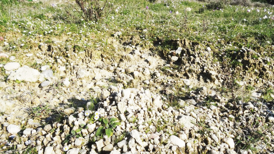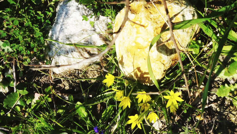 Das Überspringen der kalten Winterzeit fällt mir hier – nur 600m vom Mittelmeer entfernt leicht. Die ersten Anemonen haben ihren beschwerlichen Weg durch den nassen und lehmigen Boden gefunden und kündigen ein neues Jahr an. Links die Spur einer Ziege.