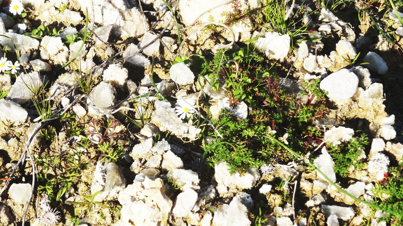 Abschied von 2000m mit Blaukissen zwischen Kalkfelsen: