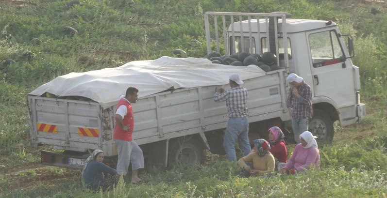 Melonenernte in Çenger am 25.05.2018 beim türkischen Bauern Bekir. Dem sein Haus im Hintergrund.