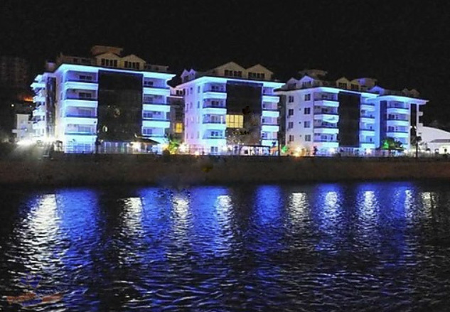 Toprak Riverstar Residence bei Nacht und Dimcay