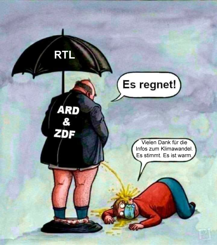 Bitte merken Sie sich: Es spielt überhaupt keine Rolle, welches Wetter es gerade gibt. Wenn der Hitzesommer angekündigt wird und dieser bei kühlen Temperaturen ins Wasser fällt, dann ist das trotzdem ein deutliches Zeichen für den Klimawandel. Und deshalb müssen Sie höhere Steuern bezahlen, ist doch völlig logisch. Und wenn Sie das anders sehen, dann sollte man über Sie vielleicht mal bei der nächsten Meldestelle Bericht erstatten, damit sich der Verfassungsschutz um Sie kümmern kann.