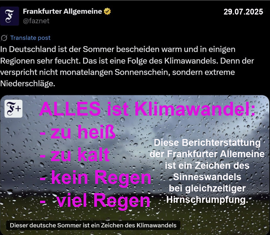 ALLES ist Klimawandel am Beispiel der Frankfurter Allgemeine vom 29.07.2025.
