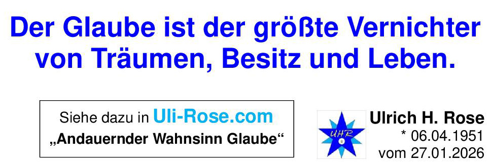 Der Glaube ist der größte Vernichter von Träumen, Besitz und Leben. Ulrich H. Rose vom 27.01.2026