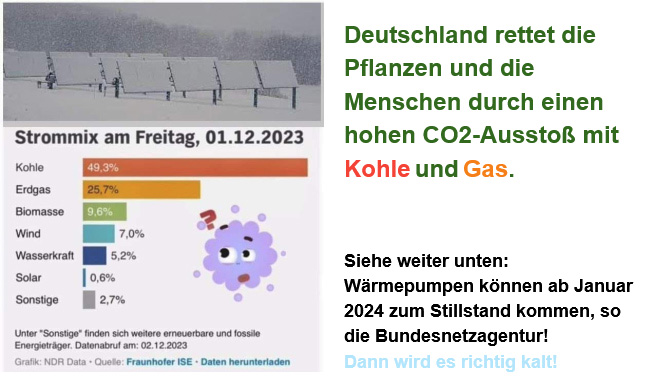 Siehe weiter unten: Wärmepumpen können ab Januar 2024 zum Stillstand kommen, so die Bundesnetzagentur. Dann wird es richtig kalt!