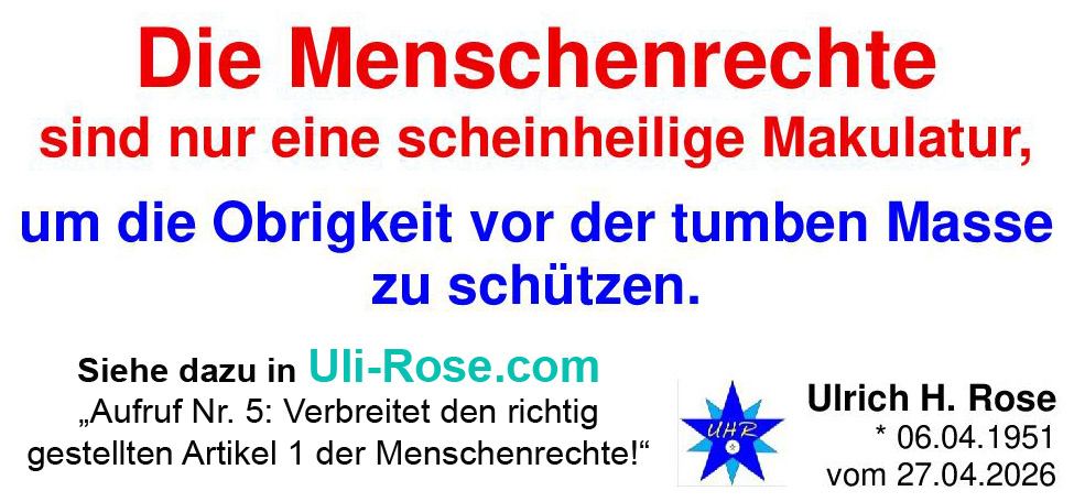 Die Menschenrechte sind nur eine scheinheilige Makulatur, um die Obrigkeit vor der tumben Masse zu schützen. Ulrich H. Rose vom 27.04.2026
