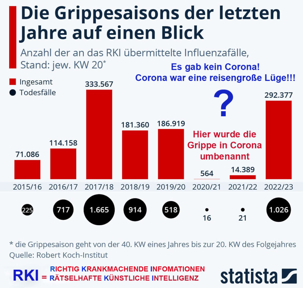 Ergänzung dazu aus dem Jahr 2023: Die Grippe wurde in den Jahren 2020 bis 2022 in Corona umbenannt.