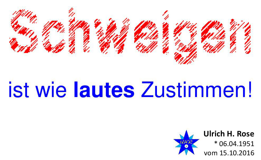 Schweigen ist wie lautes Zustimmen. Spruch von Ulrich H. Rose vom 15.10.2016