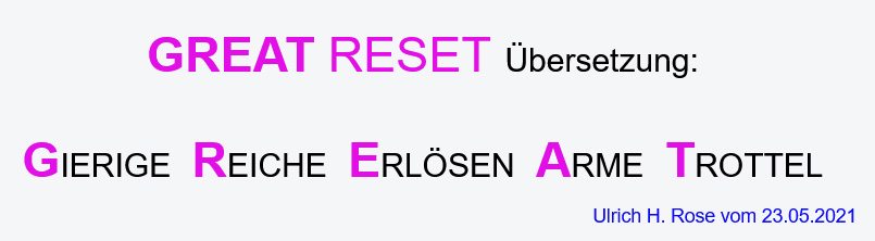 GREAT RESET Übersetzung: GIERIGE REICHE ERLÖSEN ARME TROTTEL. Ulrich H. Rose vom 23.05.2021