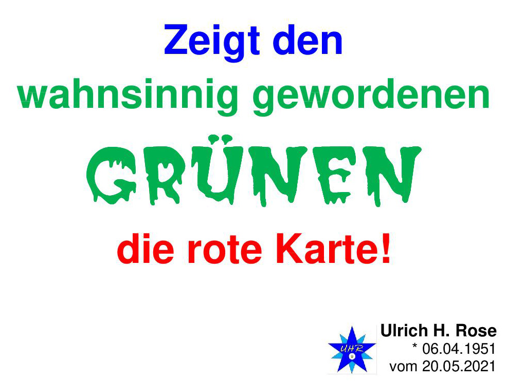 Zeigt den wahnsinnig gewordenen GRÜNEN die rote Karte! Ulrich H. Rose vom 20.05.2021