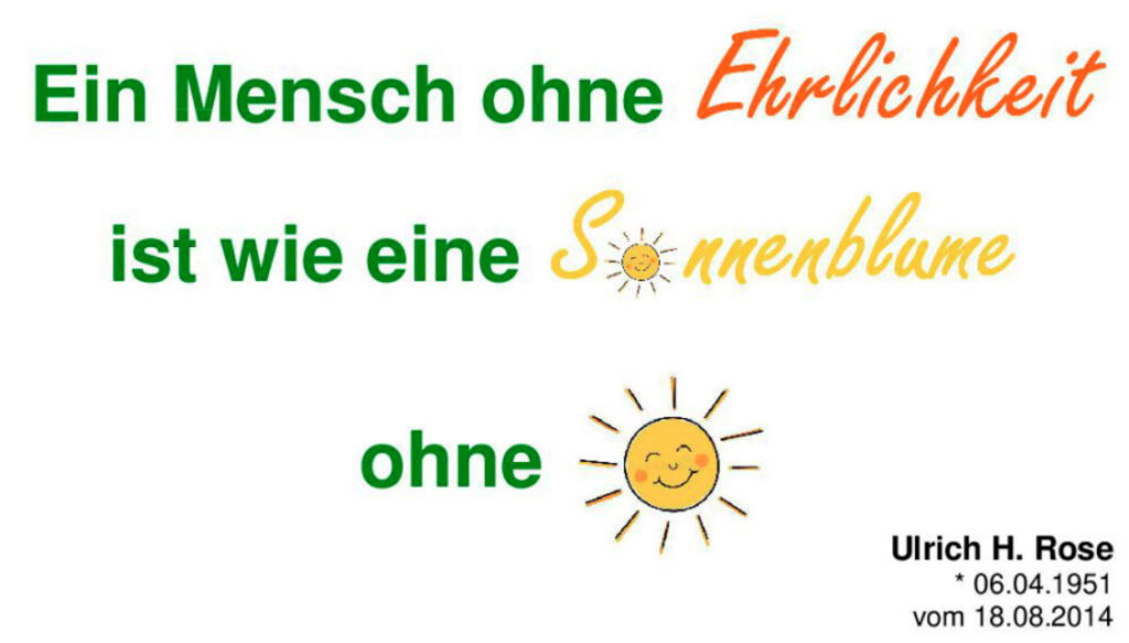 Ein Mensch ohne Ehrlichkeit ist wie eine Sonnenblume ohne Sonne. Spruch von Ulrich Rose vom 18.08.2014