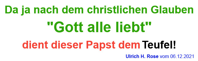 Da ja nach dem christlichen Glauben“Gott alle liebt“ dient dieser Papst dem Teufel! Ulrich H. Rose vom 06.12.2021