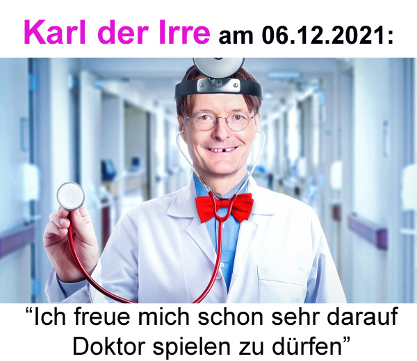 Karl Lauterbach’s Motto 2021: Für jeden eine Corona-Spritze und für mich die Zwangsjacke. Am 06.12.2021 wurde „Karl der Irre“ zum Todesminister ernannt. Ulrich H. Rose vom 06.12.2021