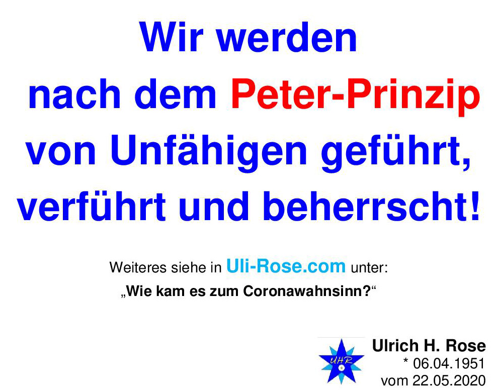 Wir werden nach dem Peter-Prinzip von Unfähigen geführt verführt und beherrscht! Ulrich H. Rose vom 22.05.2020