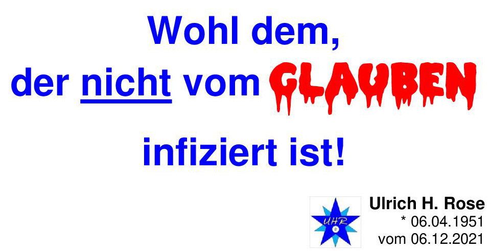 Wohl dem, der nicht vom Glauben infiziert ist! Ulrich H. Rose vom 06.12.2021