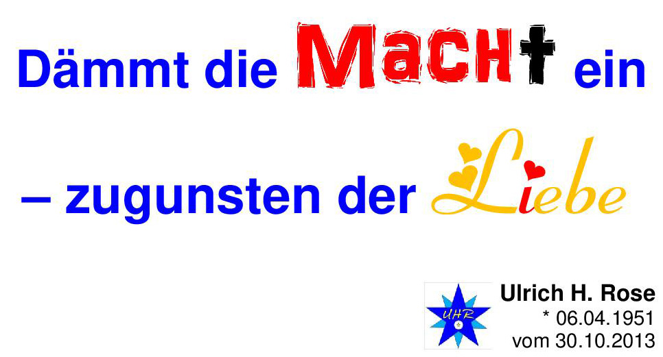 Dämmt die Macht ein – zugunsten der LIEBE. Ulrich H. Rose vom 30.10.2013