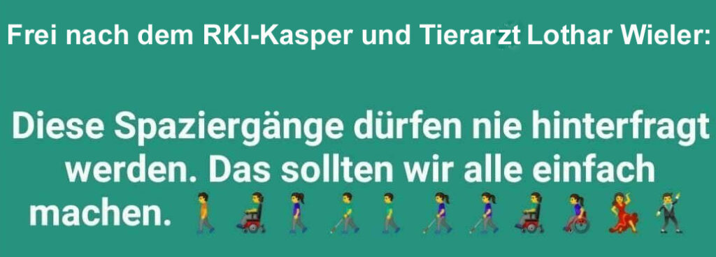 Frei nach dem RKI-Kasper und Tierarzt Lothar Wieler: Dies Spaziergänge dürfen nie hinterfragt werden! Das sollten wir alle einfach machen.