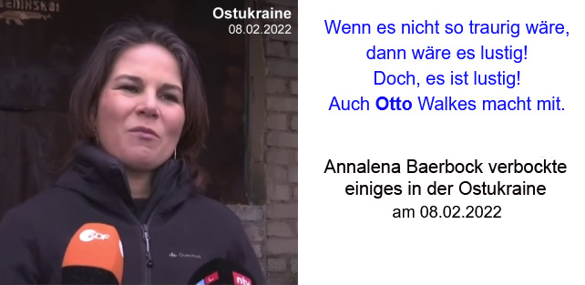 Ostukraine 08.02.2022, Wenn es nicht so traurig wäre, dann wäre es lustig! Doch, es ist lustig! Auch Otto Walkes macht mit. Annalena Baerbock verbaerbockt einiges in der Ostukraine am 08.02.2022