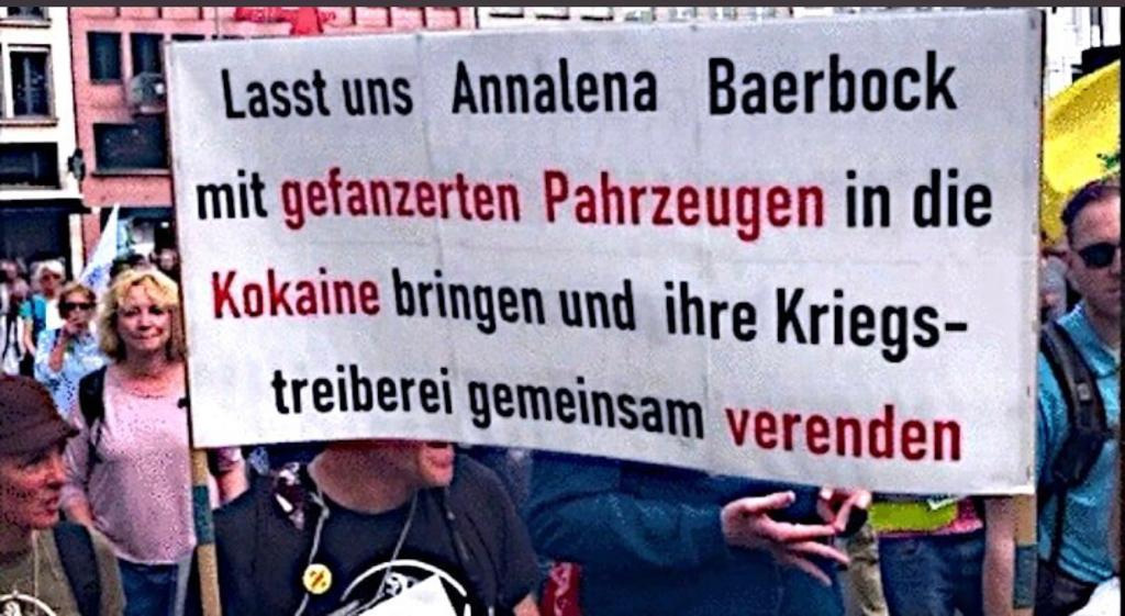 Lasst uns Annelena Baerbock mit gefanzerten Pahrzeugen in die Kokaine bringen und ihre Kriegstreiberei gemeinsam verenden!