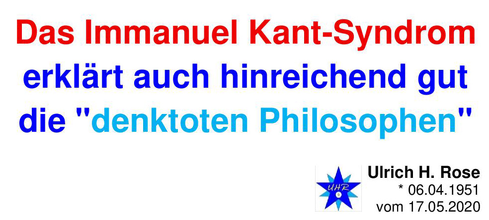 Das Immanuel Kant-Syndrom erklärt auch hinreichend gut die „denktoten Philosophen“. Ulrich H. Rose vom 17.05.2020
