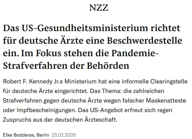 NZZ. Das US-Gesundheitsministerium richtet für deutsche Ärzte eine Beschwerdestelle ein. 23.02.2026
