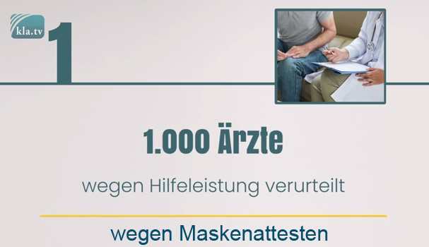 kla.tv: 1.000 Ärzte wegen Hilfeleistung verurteilt wegen z. Bsp. Maskenattesten. Die Ärzte versuchten auf diesem Wege Kinder und Menschen vor den unheilvollen Corona-Richtlinien zu schützen.