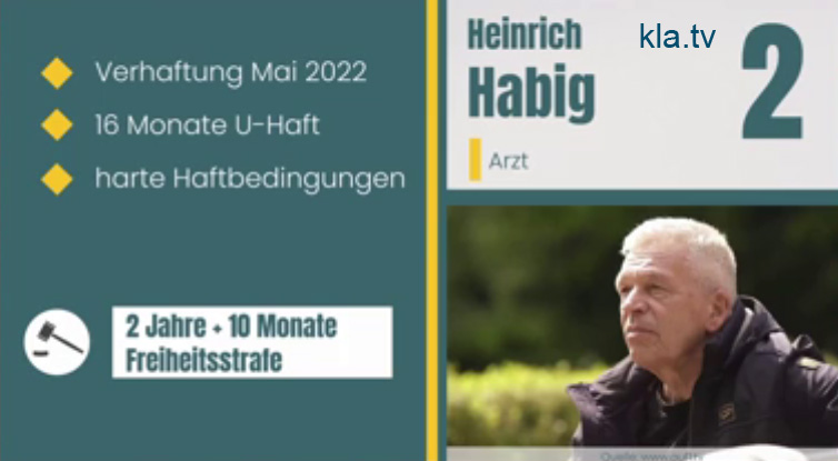kla.tv: Heinrich Habig, Arzt. Verhaftung Mai 2022. 16 Monate U-Haft. Harte Haftbedingungen. Er hat seine Patienten vor der unheilvollen Corona-Giftspritze schützen wollen. Das ließ die Corona-Diktatur nicht zu. Seine Gefängniszelle hatte nur 3,1 qm.