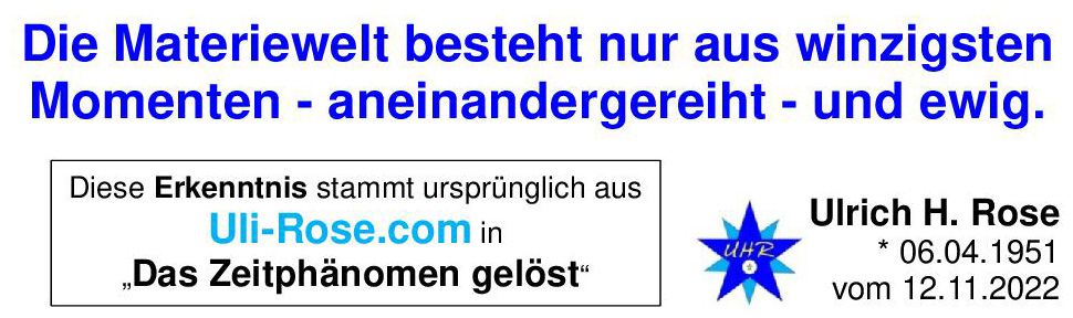 Die Materiewelt besteht nur aus winzigsten Momenten – aneinandergereiht – und ewig. Ulrich H. Rose vom 21.11.2022
