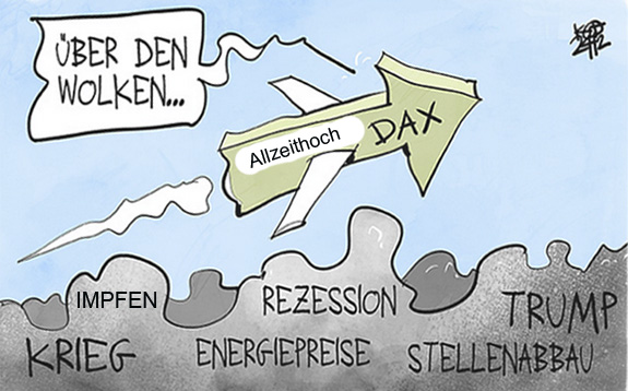 Über den Wolken … Allzeithoch DAX. IMPFEN KRIEG REZESSION ENERGIEPREISE TRUMP STELLENABBAU.