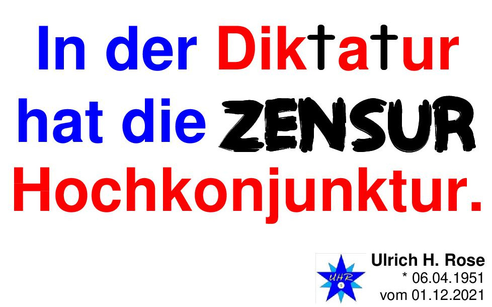 In der Diktatur hat die Zensur Hochkonjunktur. Ulrich H. Rose vom 01.12.2021
