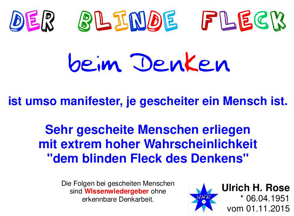 Hier geht es weiter zu „Notwendig gewordene Ergänzung zur Erkenntnis Der blinde Fleck beim DenKen