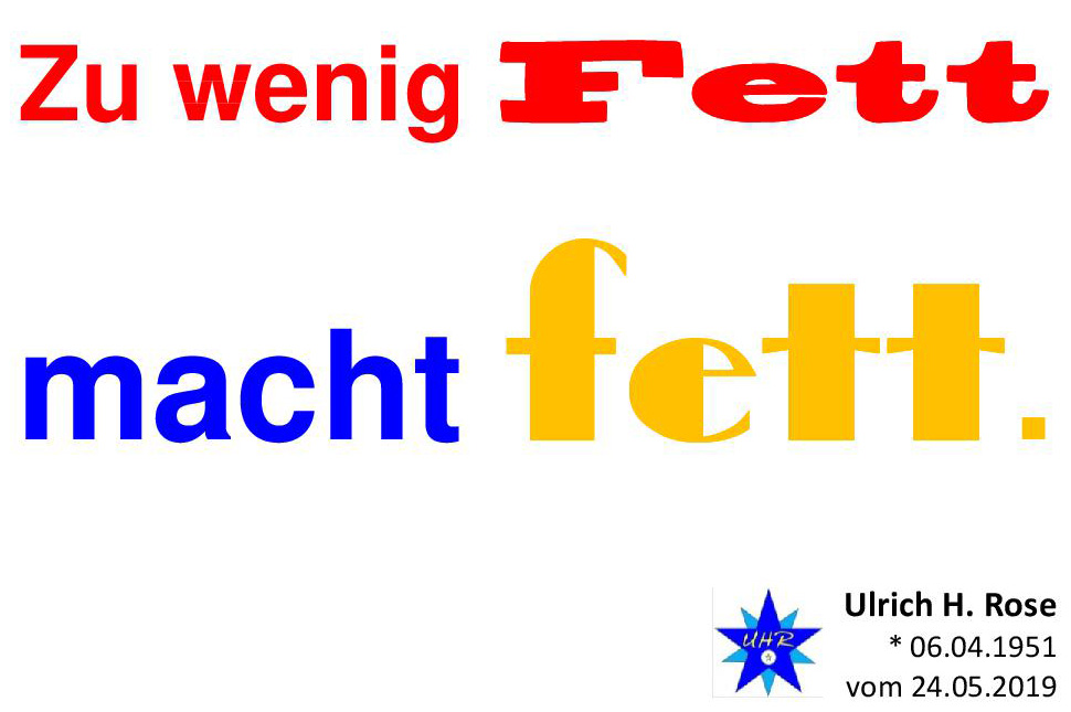 Zu wenig Fett macht fett. Spruch v. Ulrich H. Rose vom 24.05.2019