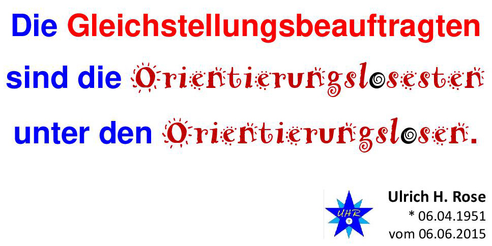 Die Gleichstellungsbeauftragten sind die Orientierungslosesten unter den Orientierungslosen. Ulrich H. Rose vom 06.06.2015