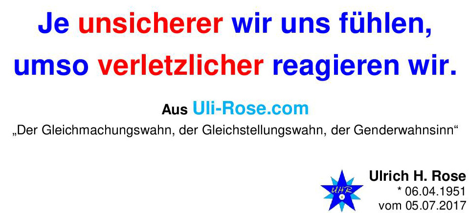 Je unsicherer wir uns fühlen, umso verletzlicher reagieren wir. Ulrich H. Rose vom 05.07.2017