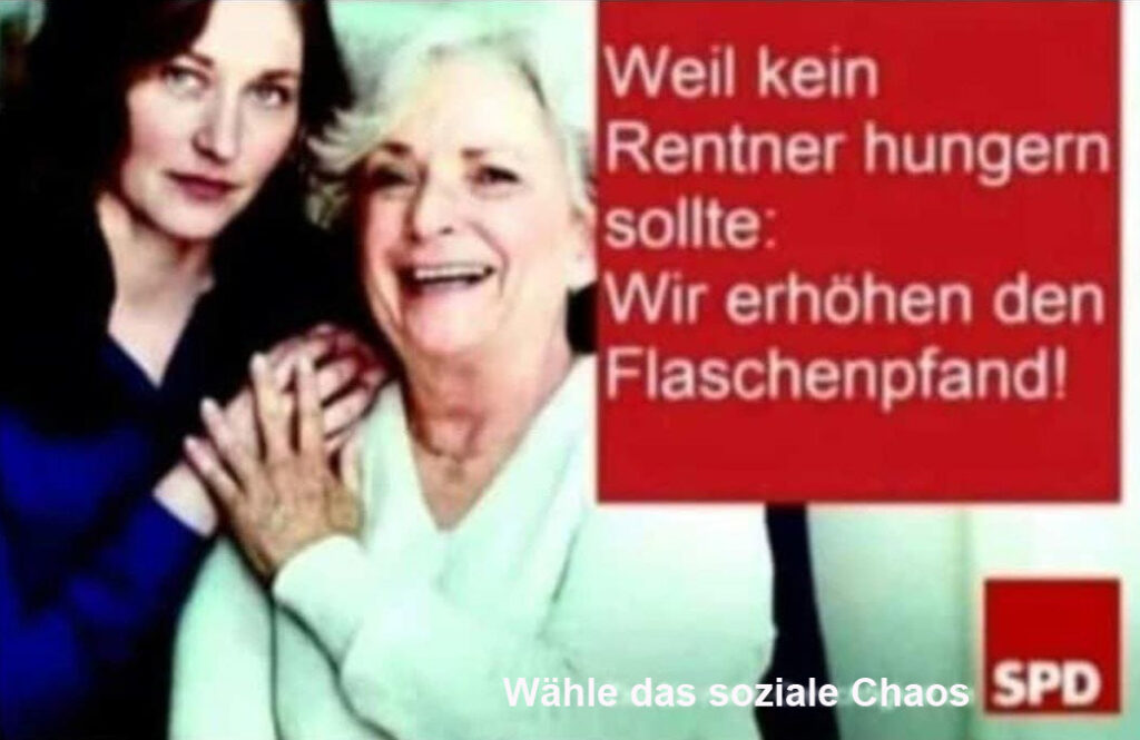 Weil kein Rentner hungern sollte: Wir erhöhen das Flaschenpfand. Wähle das soziale Chaos SPD