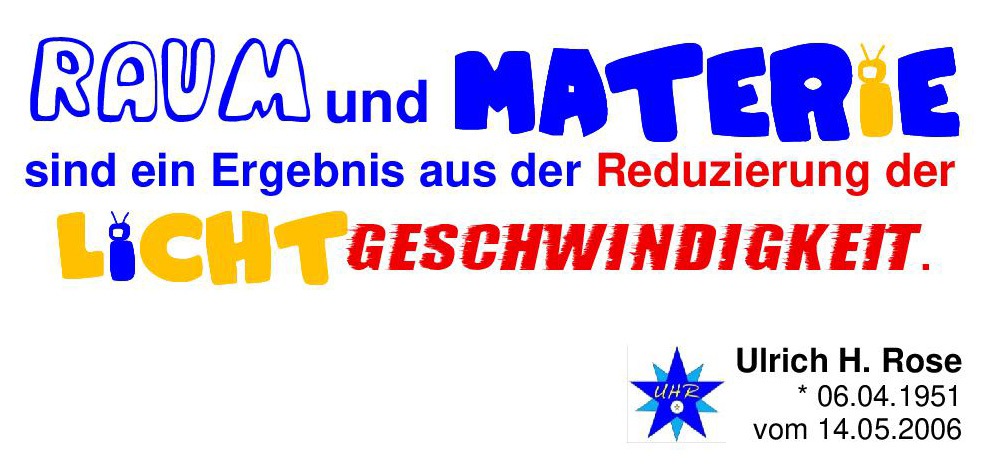 Raum und Materie sind ein Ergebnis aus der Reduzierung der Lichtgeschwindigkeit. Ulrich H. Rose vom 14.05.2006