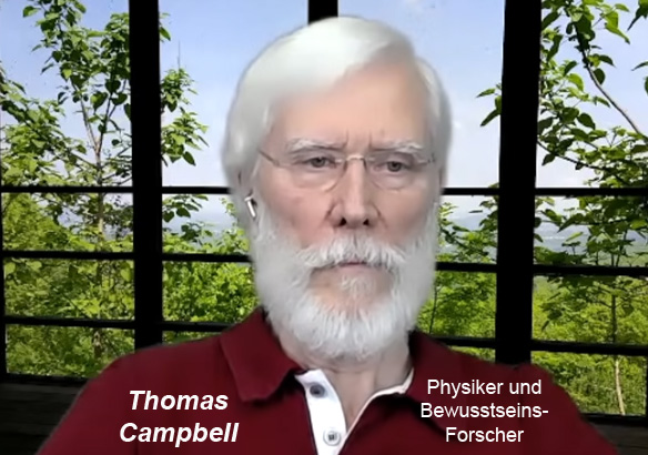 Thomas Campbell (* 09.12.1944 in Hagerstown, Maryland USA) ist Physiker und Bewusstseinsforscher. Seine umfassende „MTB-Theorie“ * soll sowohl die Rätsel des Geistes und auch der Quantenphysik lösen. Campbell kommt darin zum Schluss, dass Bewusstsein nicht aus Materie hervor geht, sondern dass die materielle Welt erst infolge von Bewusstsein entstand. Er betrachtet die physische Welt als virtuelle Wirklichkeit und ist von der Unsterblichkeit des menschlichen Bewusstseins überzeugt. Siehe dazu „Es gibt ein größeres Bewusstseins-System„.