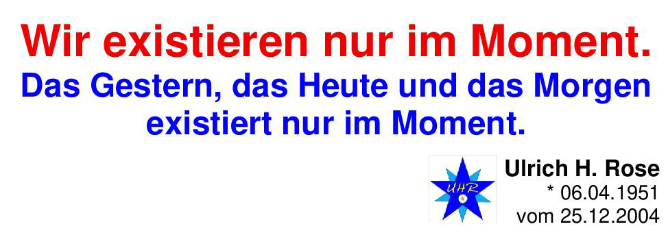 Wir existieren nur im Moment. Das Gestern, das Heute und das Morgen existiert nur im Moment. Ulrich H. Rose vom 25.12.2004